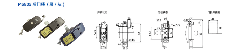 MS805后门锁〔黑/灰)