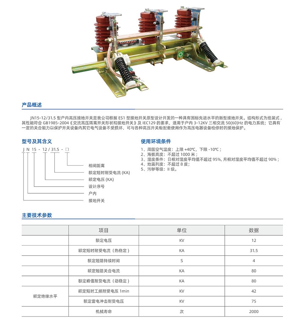 > JN15-12,31.5(ES1-10,31.5)型组合式接地开关
